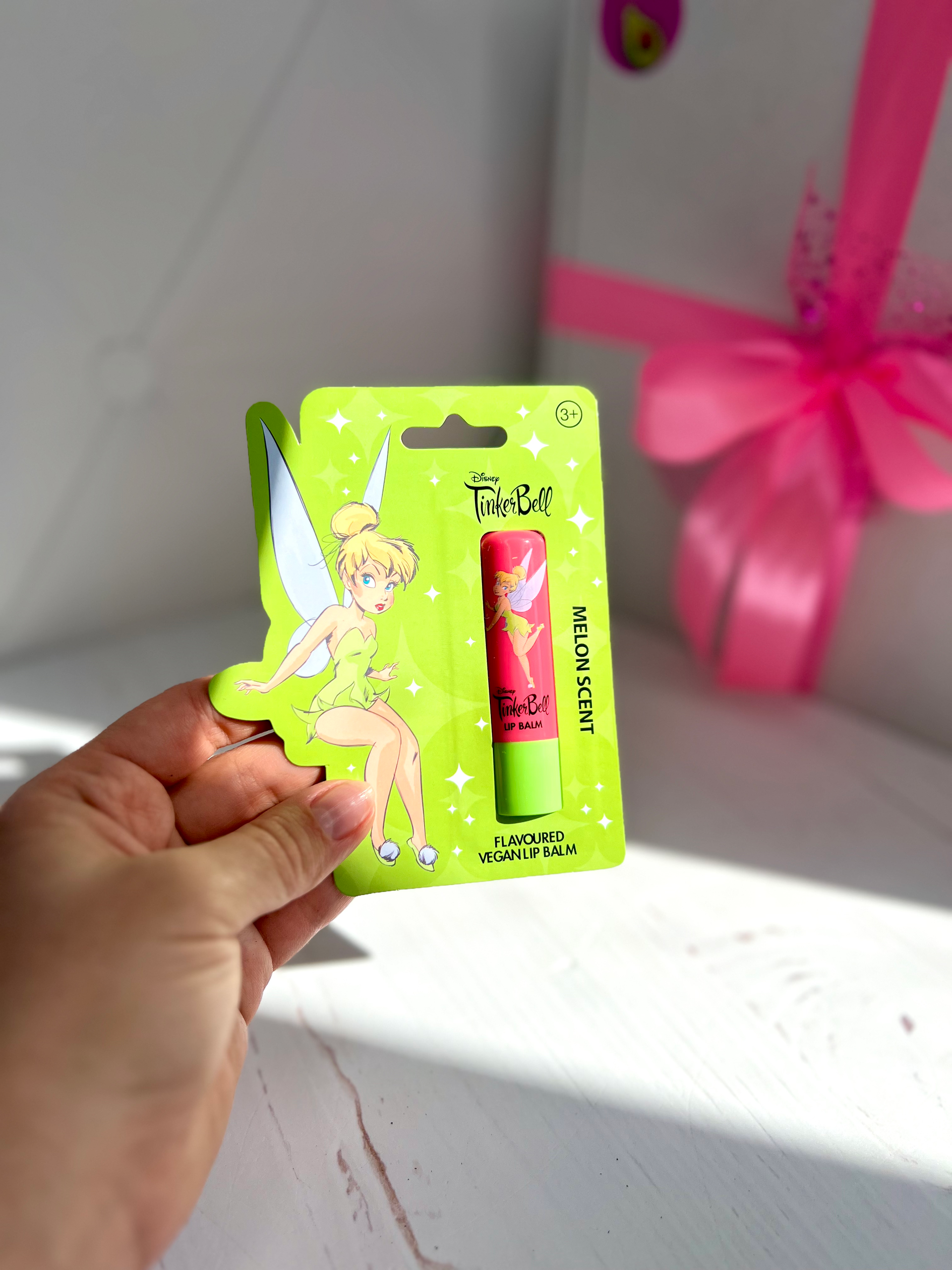 Чарівний бальзам для губ з феєю Дінь-Дінь із Disney. Має приємний аромат дині, зволожує губи та ідеально підходить для дітей. Безпечний веганський склад. Стильний та яскравий аксесуар, який стане чудовим подарунком для маленьких принцес.