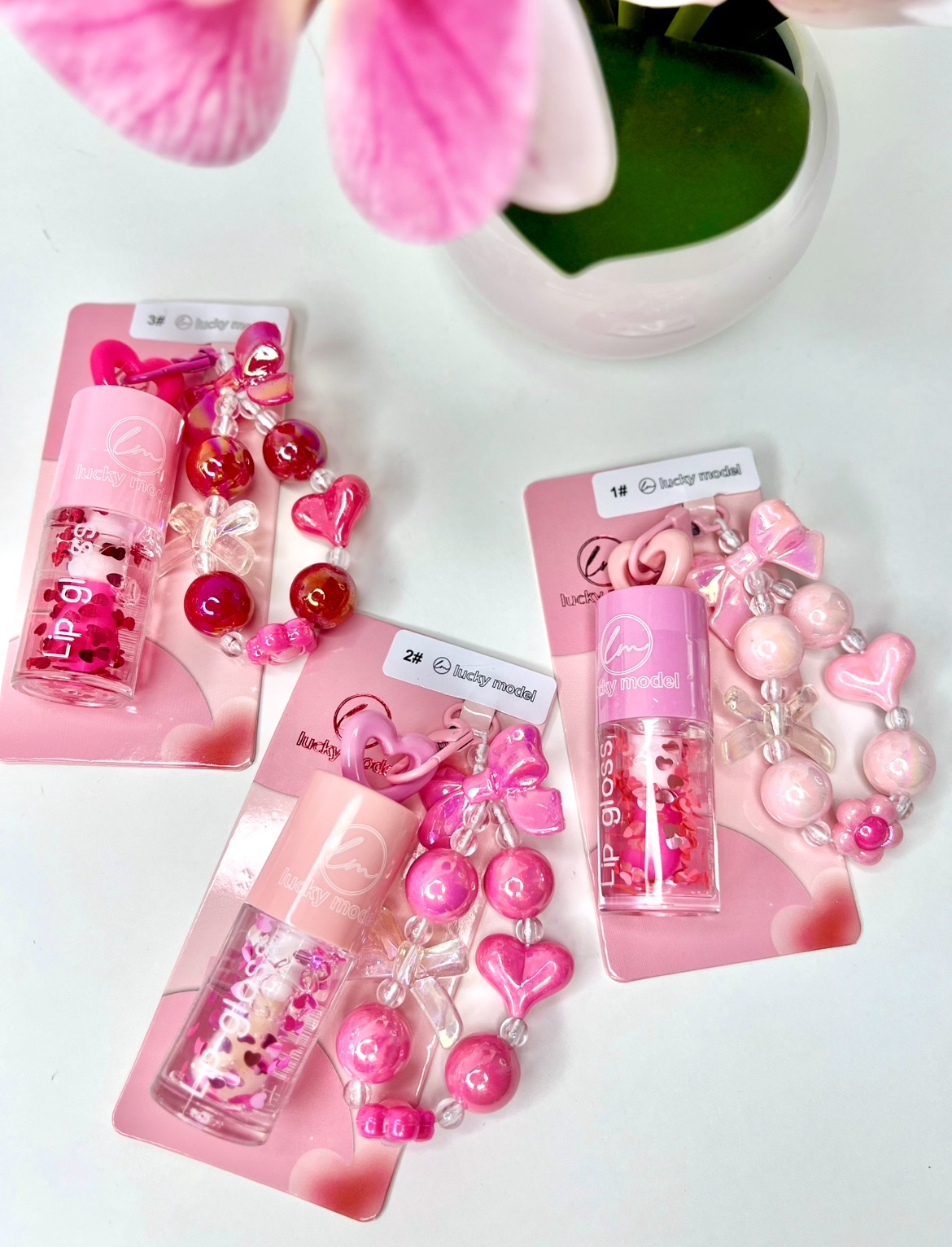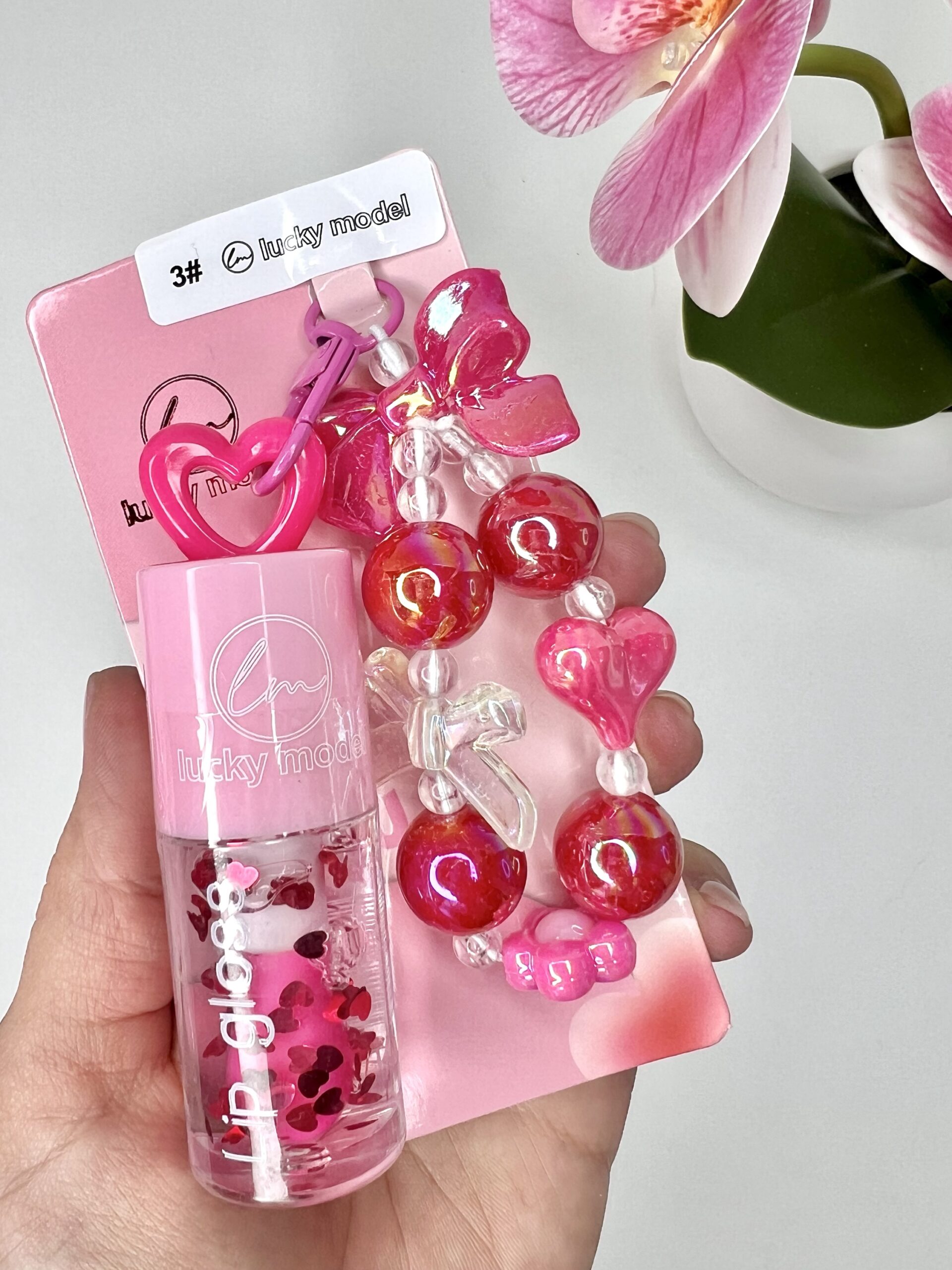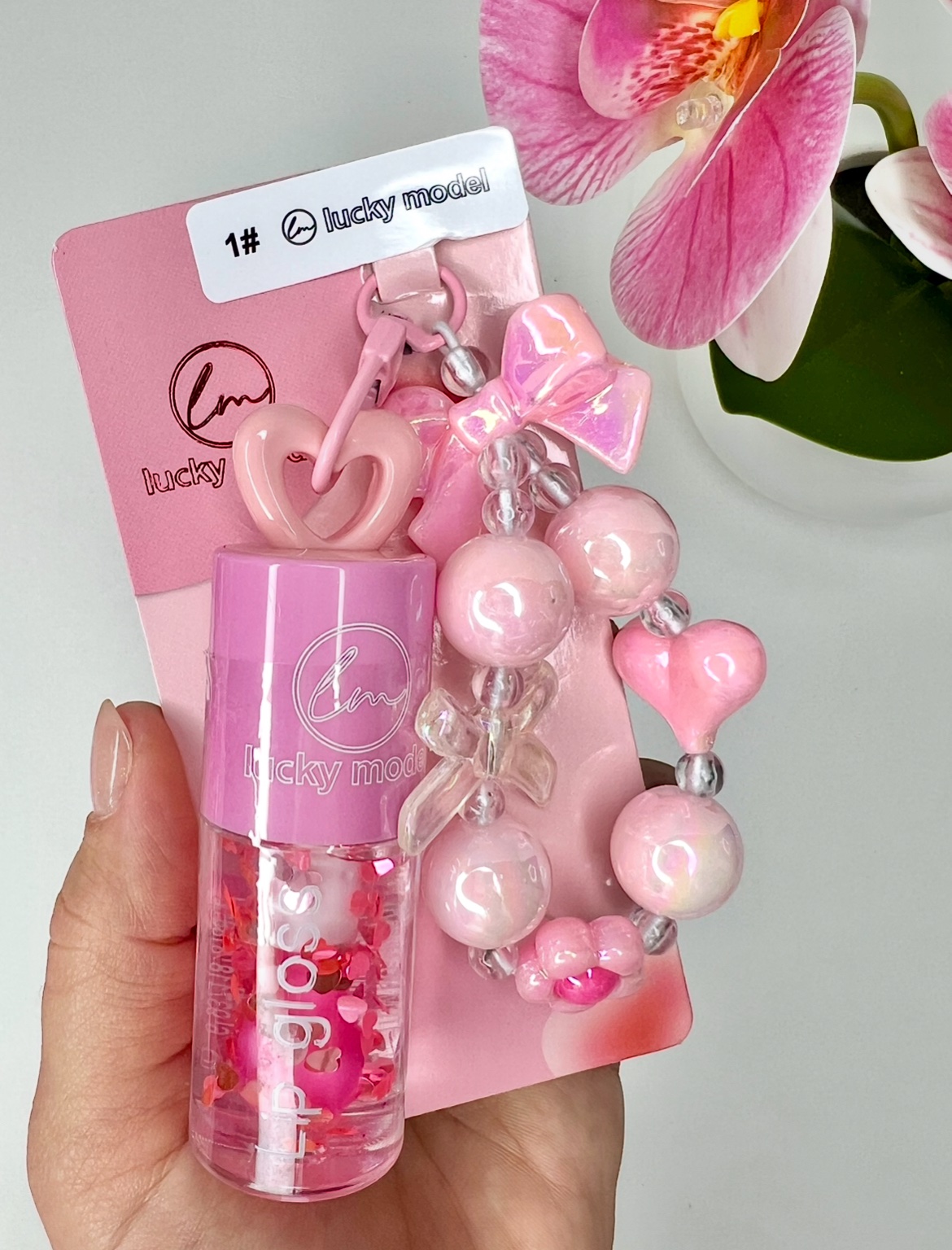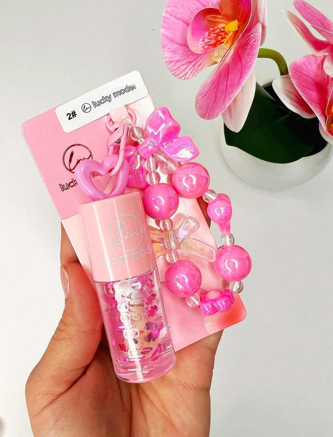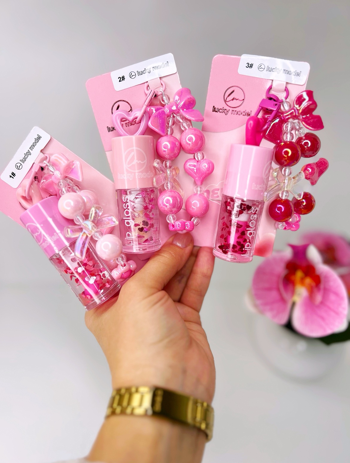 Блиск має приємний фруктовий аромат, прозорий на губах, гарно зволожує та не розтікається. В комплекті йдуть з гарним брелоком, який має карабін, його можна відчепити і повісти на любу іншу річ.