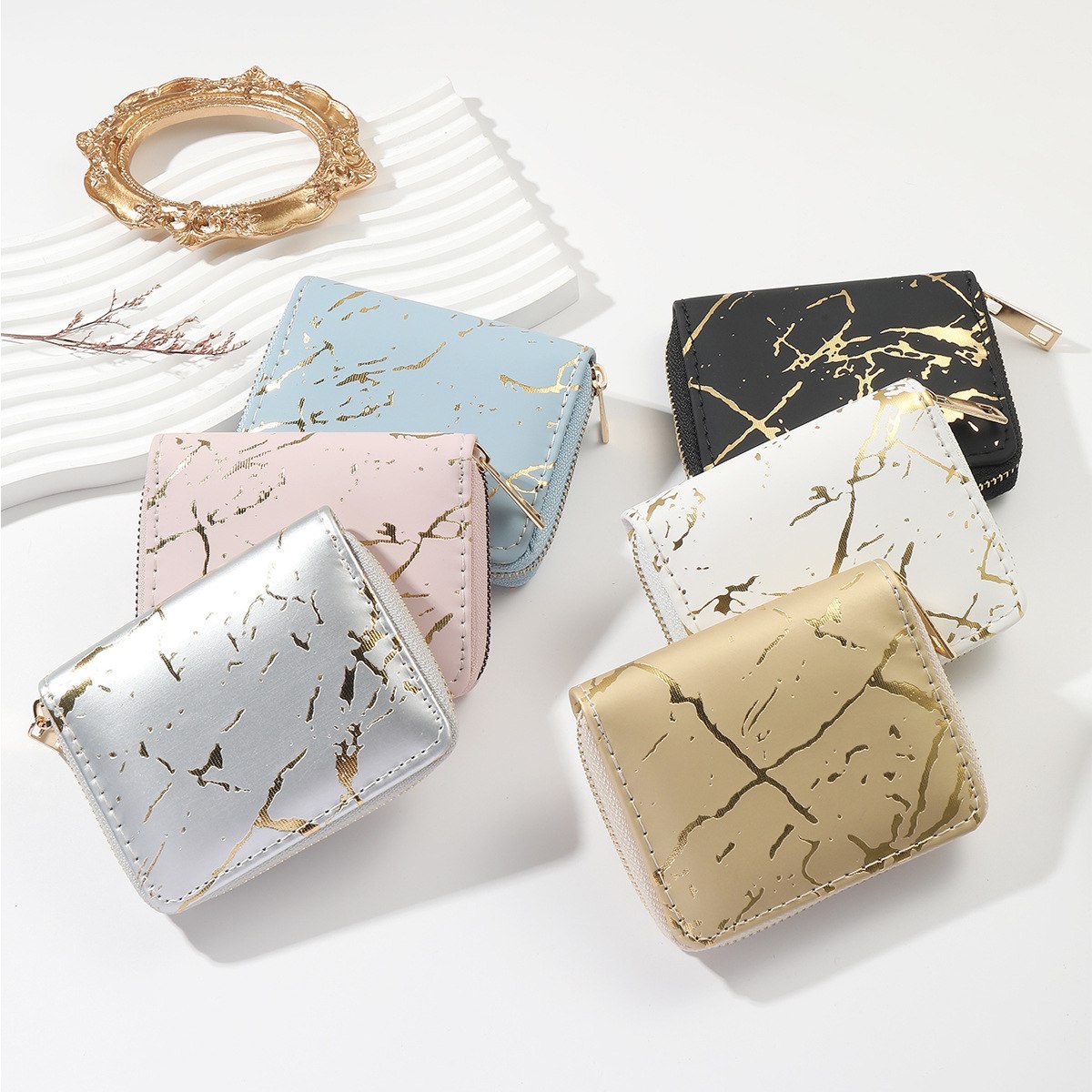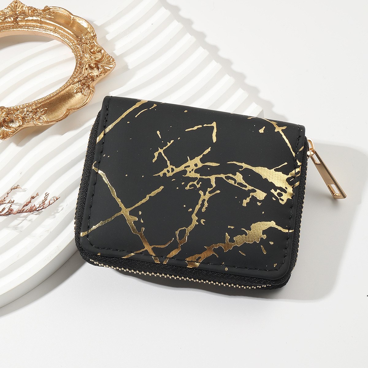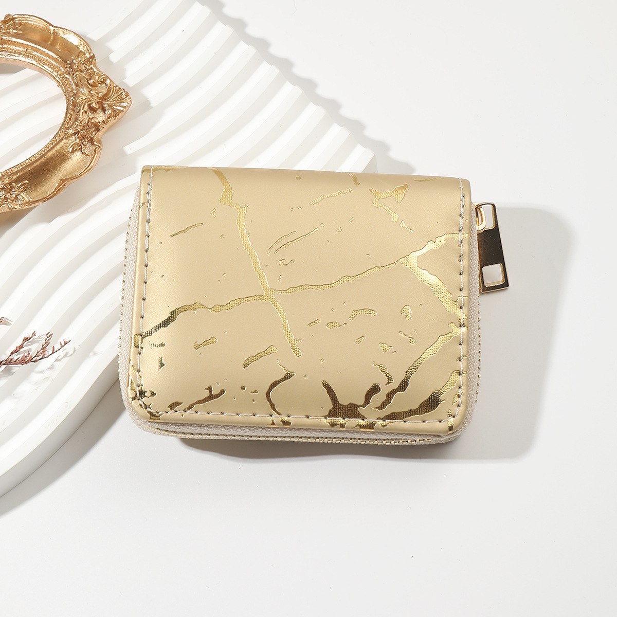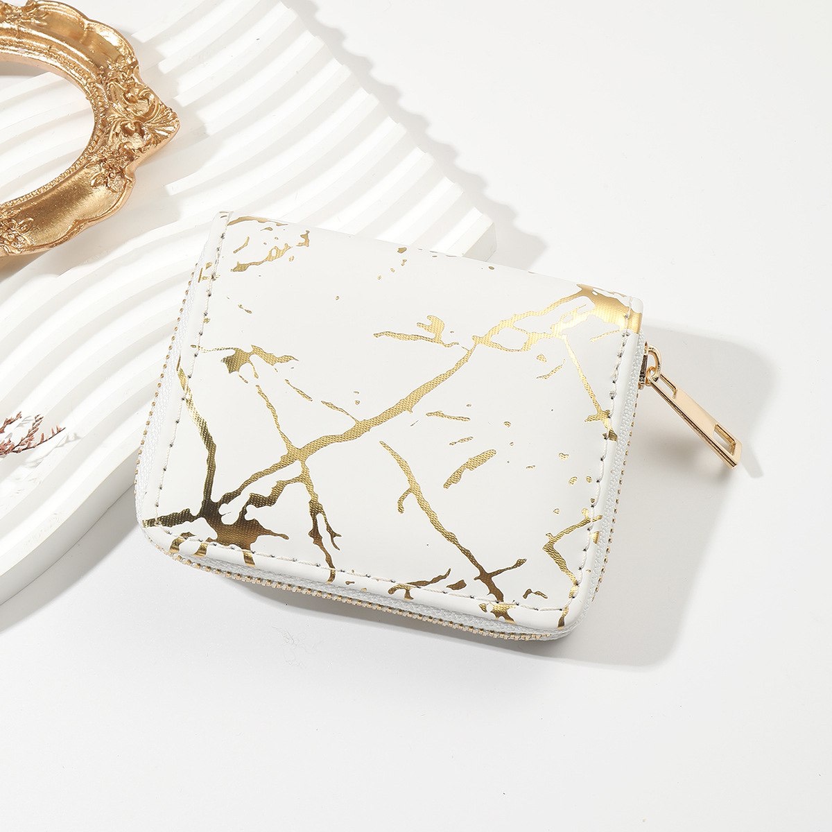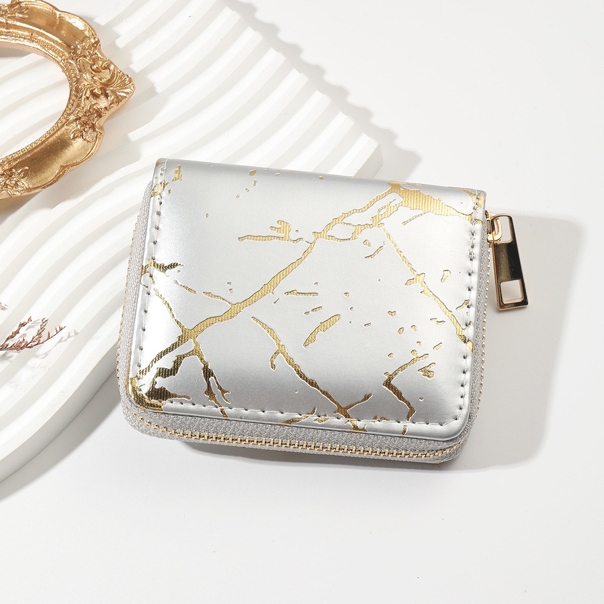 Стильний гаманець Мармур має застібку на блискавці, зручний та компактний.