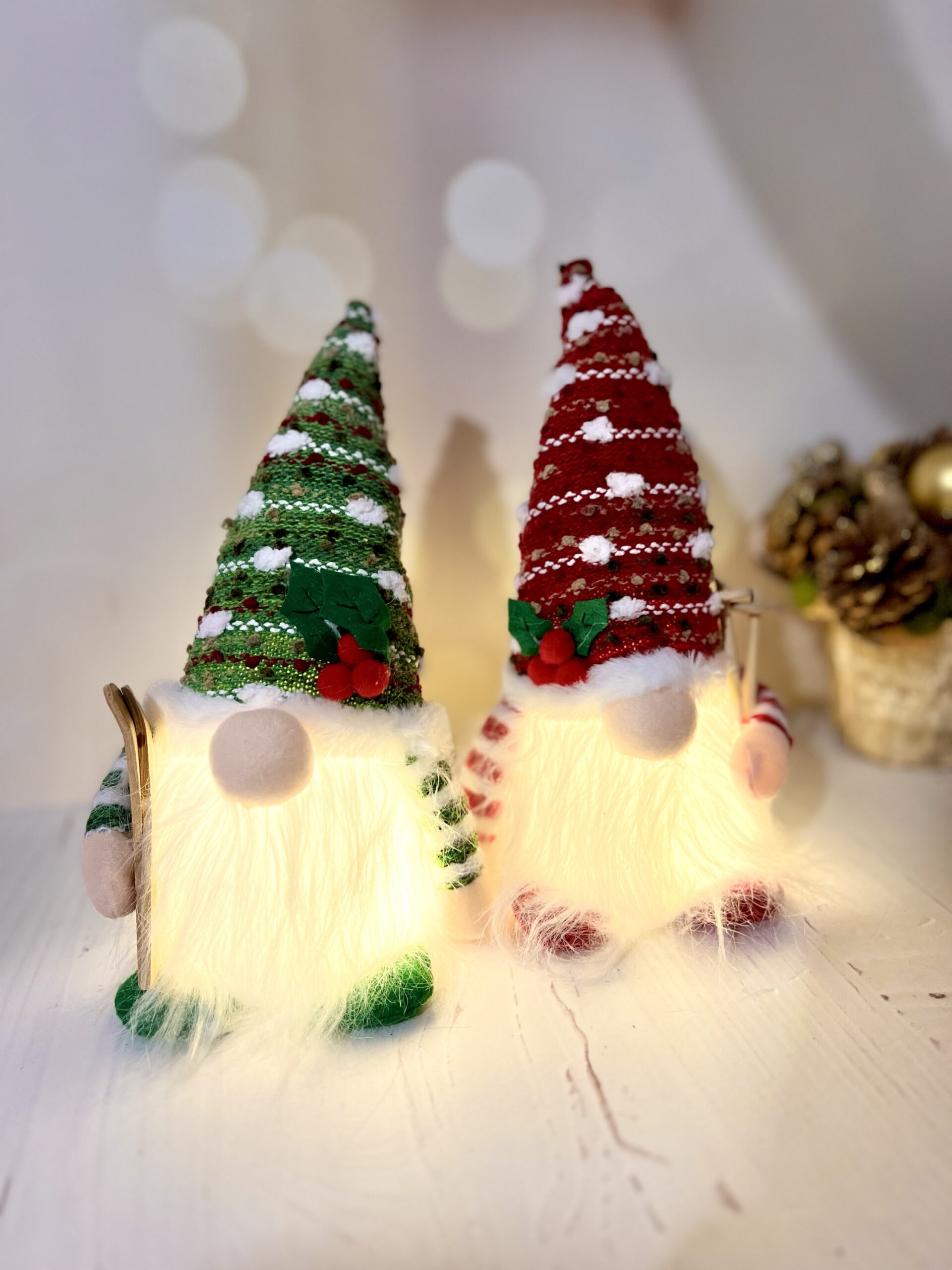 Висота гнома 25 см. Працює від батарейок типу ААА (3шт), в комплект не входить