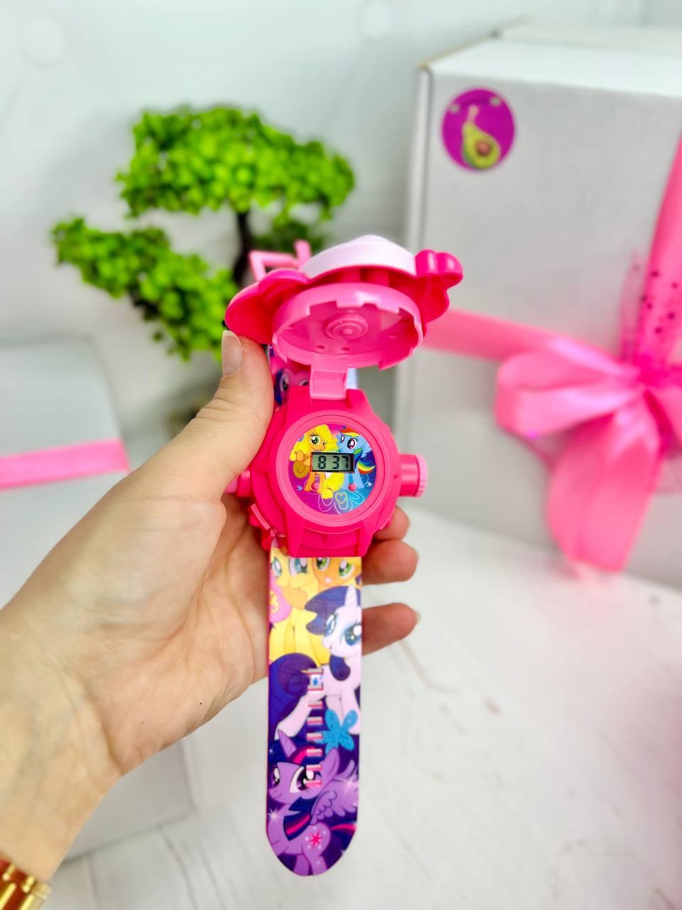 Це – чудова іграшка та аксесуар 2в1, яка може бути завжди з дитиною і не заважати в руках. Годинник проектує 24 картинки, які перемикається окремою кнопкою, різкість картинки можна відрегулювати. Також під кришкою із зображенням героя є електронний цифровий годинник.