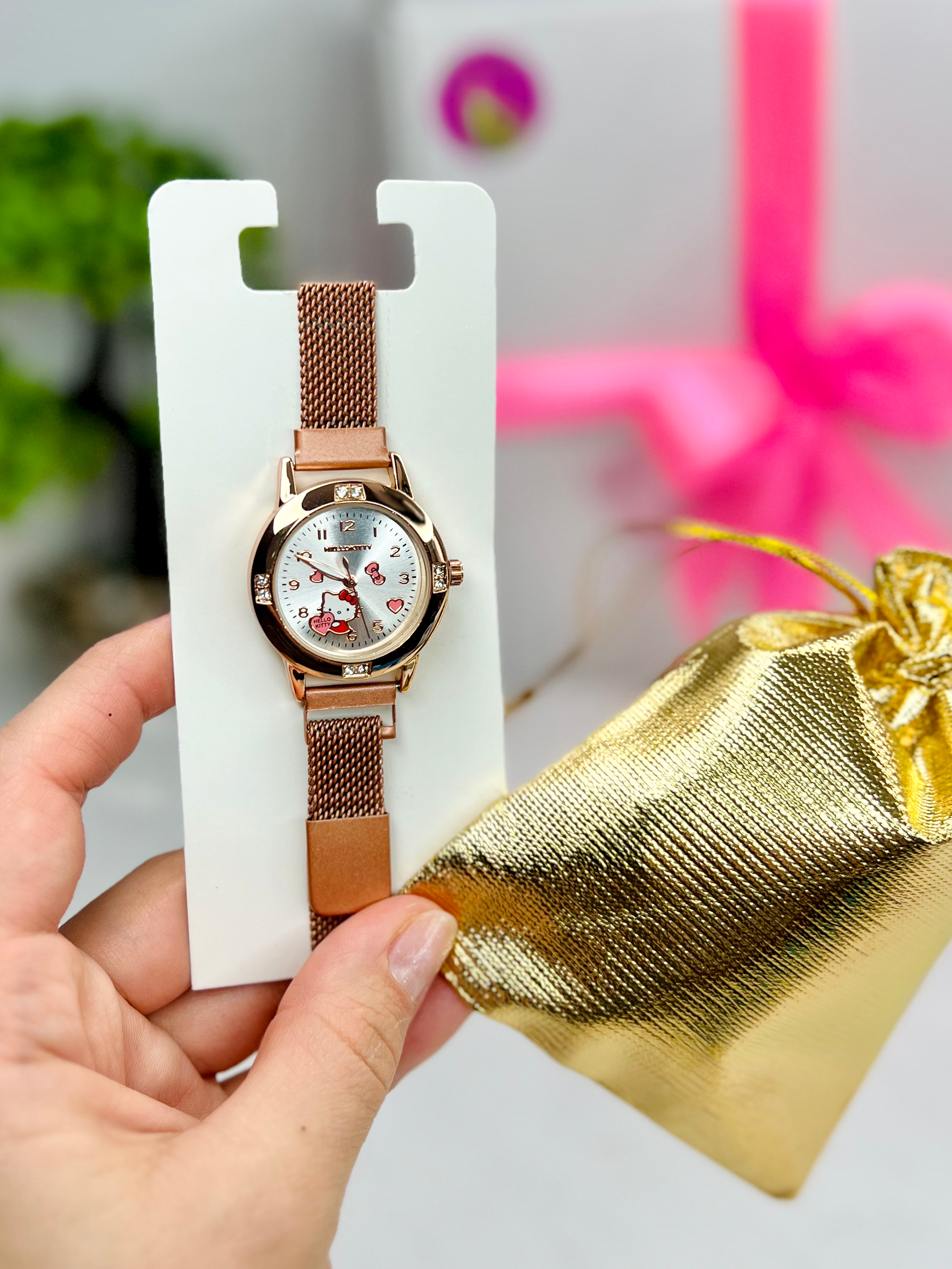 Годинник справжній, працює від батарейок. На браслеті, застібка на магніті. Підходить на любий обʼєм руки. В комплекті йде з мішечком.