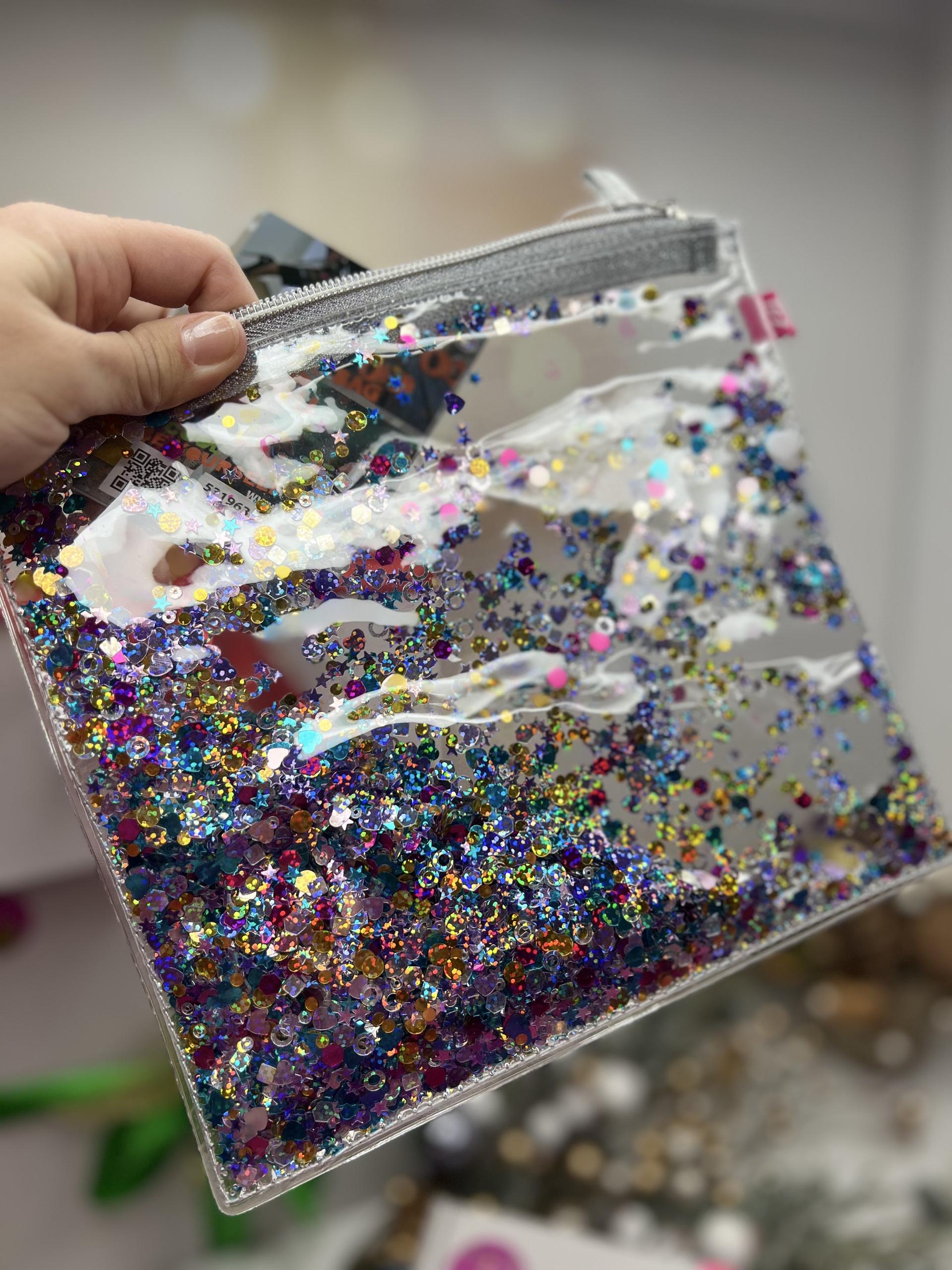 Косметичка має пересипані блискітки, що дуже подобається діткам. Розмір 22х20 см