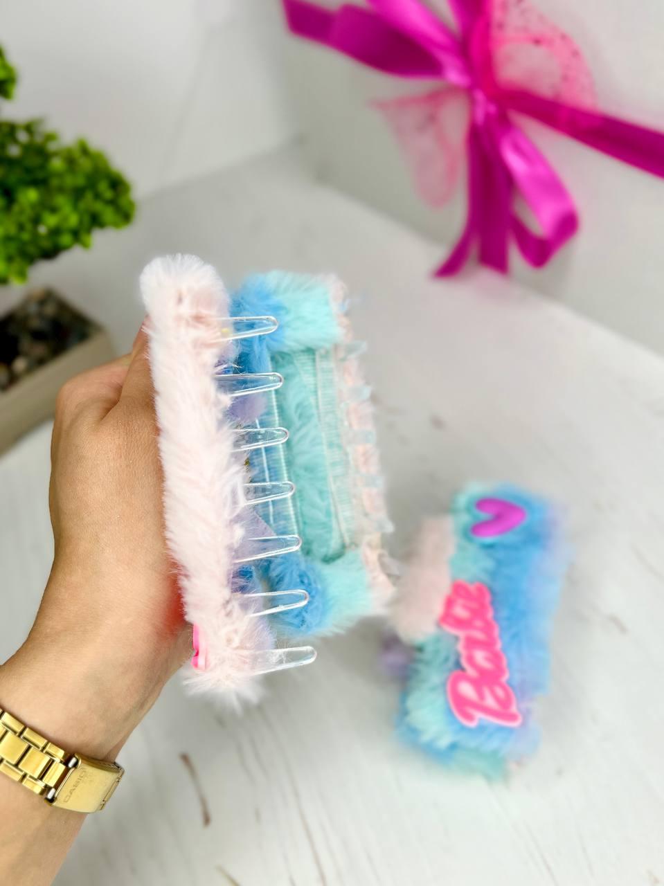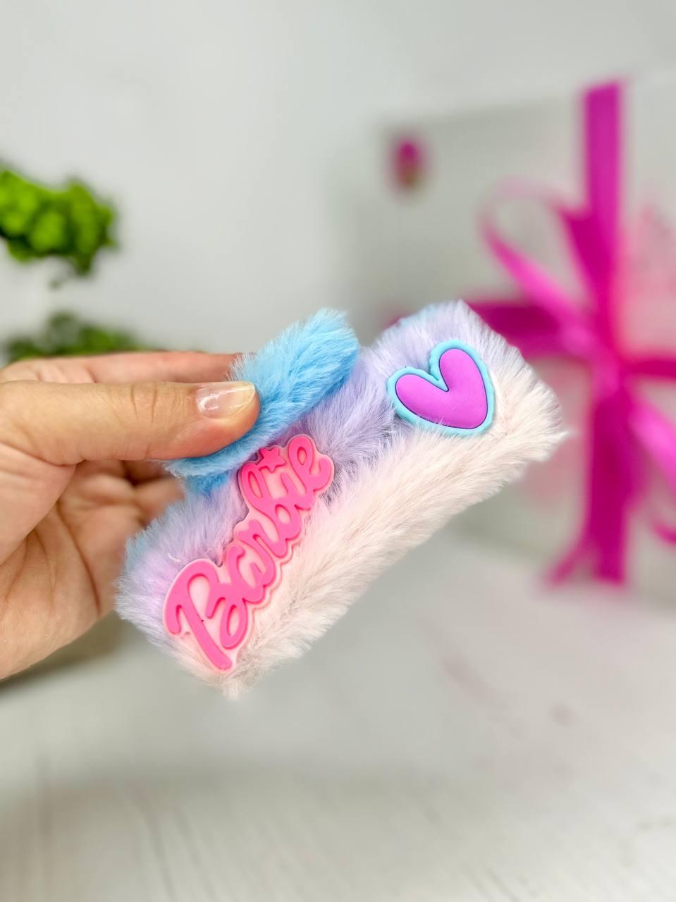 Яскравий та стильний крабик “Barbie” — ідеальний аксесуар для юних модниць! Мʼякий і пухнастий виготовлений із якісних матеріалів у пастельних кольорах. Надійно тримає волосся не заважає додає образу чарівності.