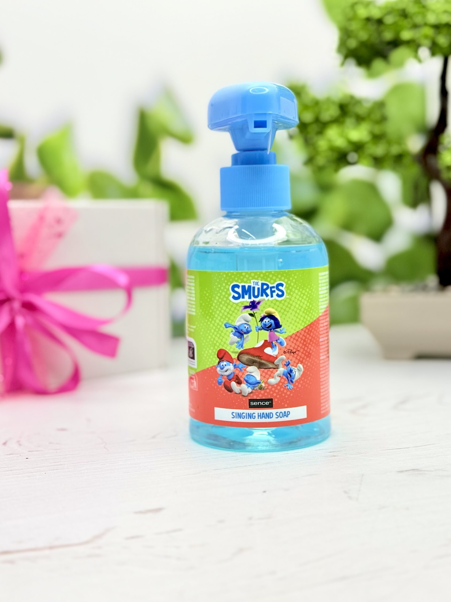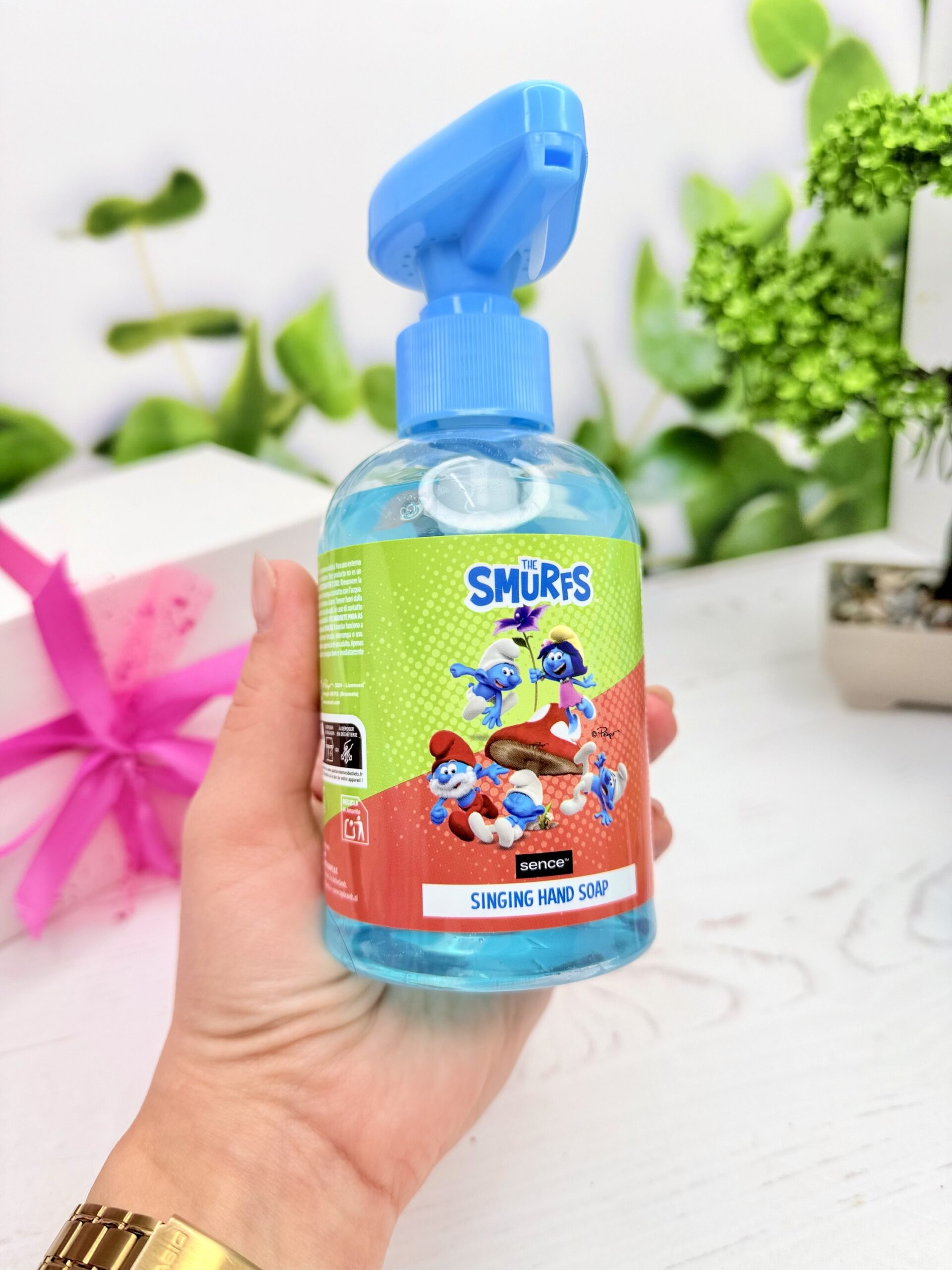 Мило при натисканні грає пісеньку смурфиків, працює від батарейок, які вже встановлені.