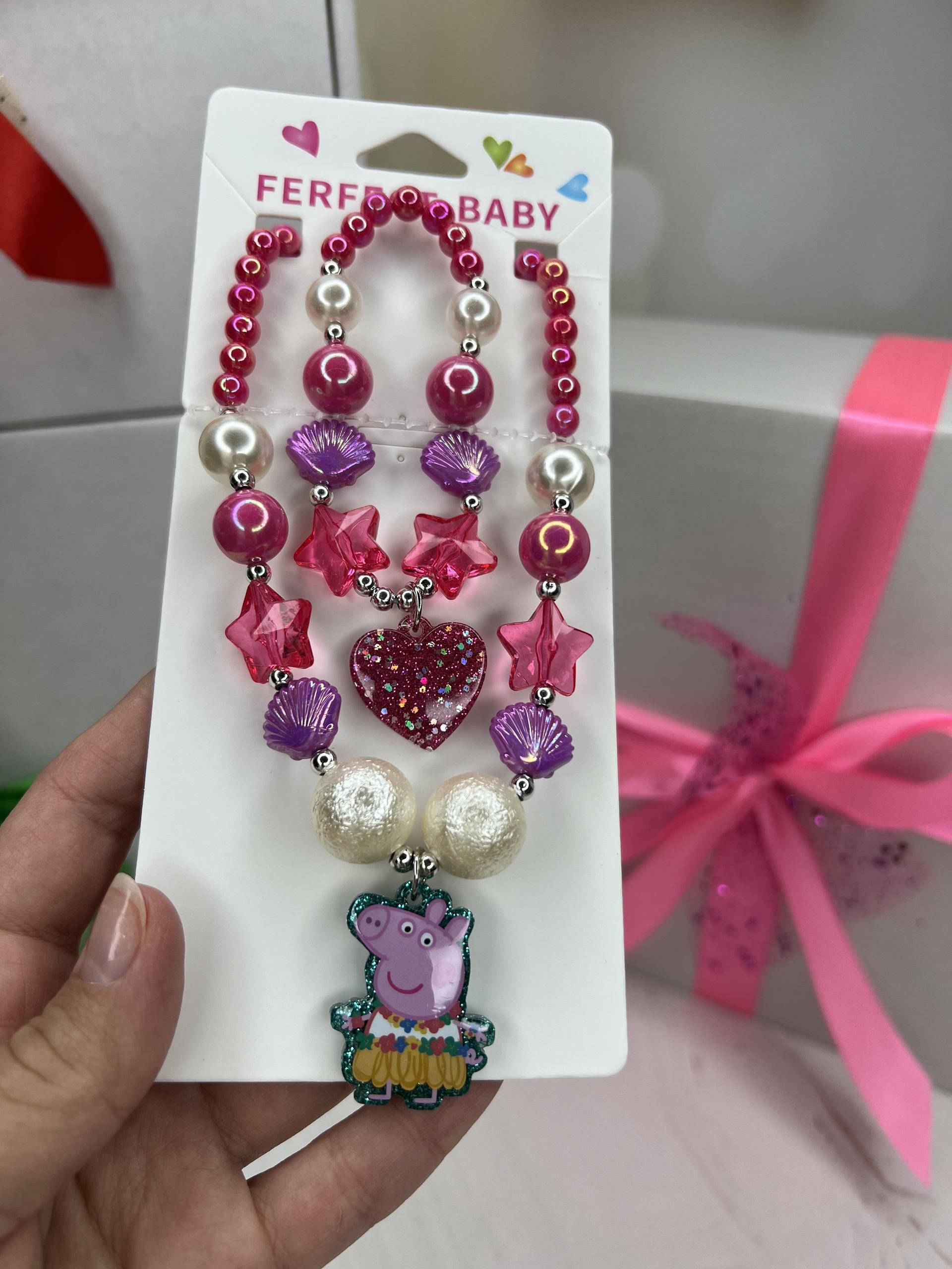 Набір прикрас Свинка Пеппа до набору входить: намисто та браслет. Виготовлений із безпечних матеріалів, підходить для дівчаток від 3 до 10 років.