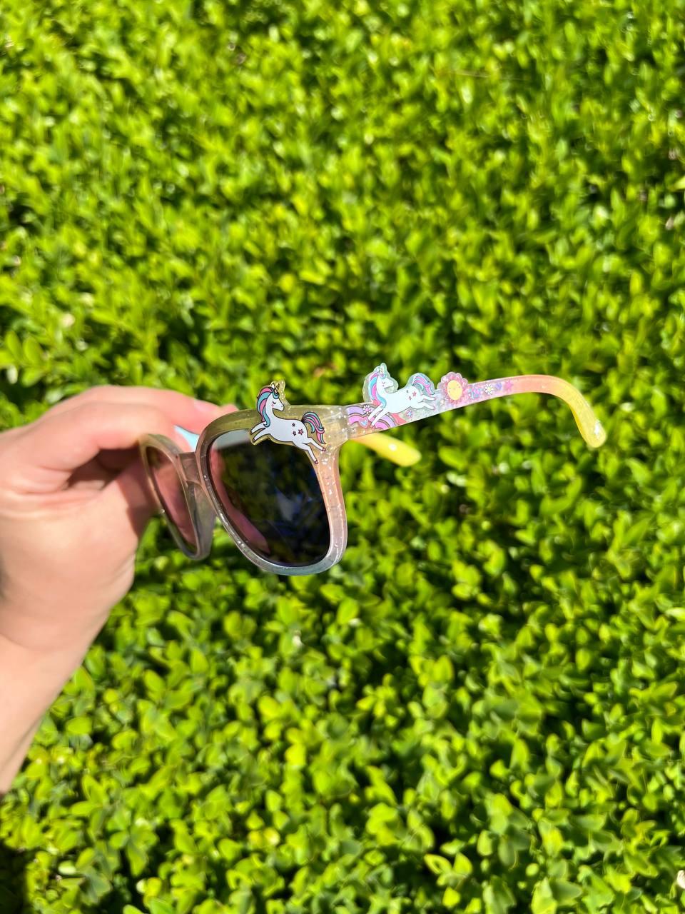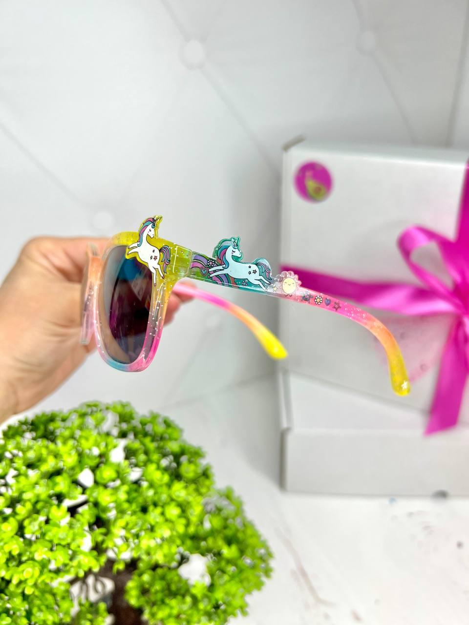Дитячі сонцезахисні окуляри Єдиноріжки – чарівний аксесуар для маленьких модниць! Рожево-блакитна оправа з блискітками та милим єдинорогом додає казкового настрою. Легкі, зручні та з надійним захистом від сонця, вони ідеально підходять для прогулянок і веселих пригод на свіжому повітрі! Захист від ультрафіолету 400/UV