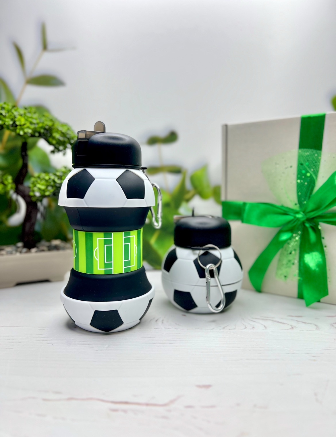 Пляшка силіконова, яка складається в менший розмір дуже зручна у використанні. Обʼєм в розкладеному вигляді 550 мл в складеному 220 мл. Має карабін за який можна прикріпити до сумки, рюкзаку чи поясу.