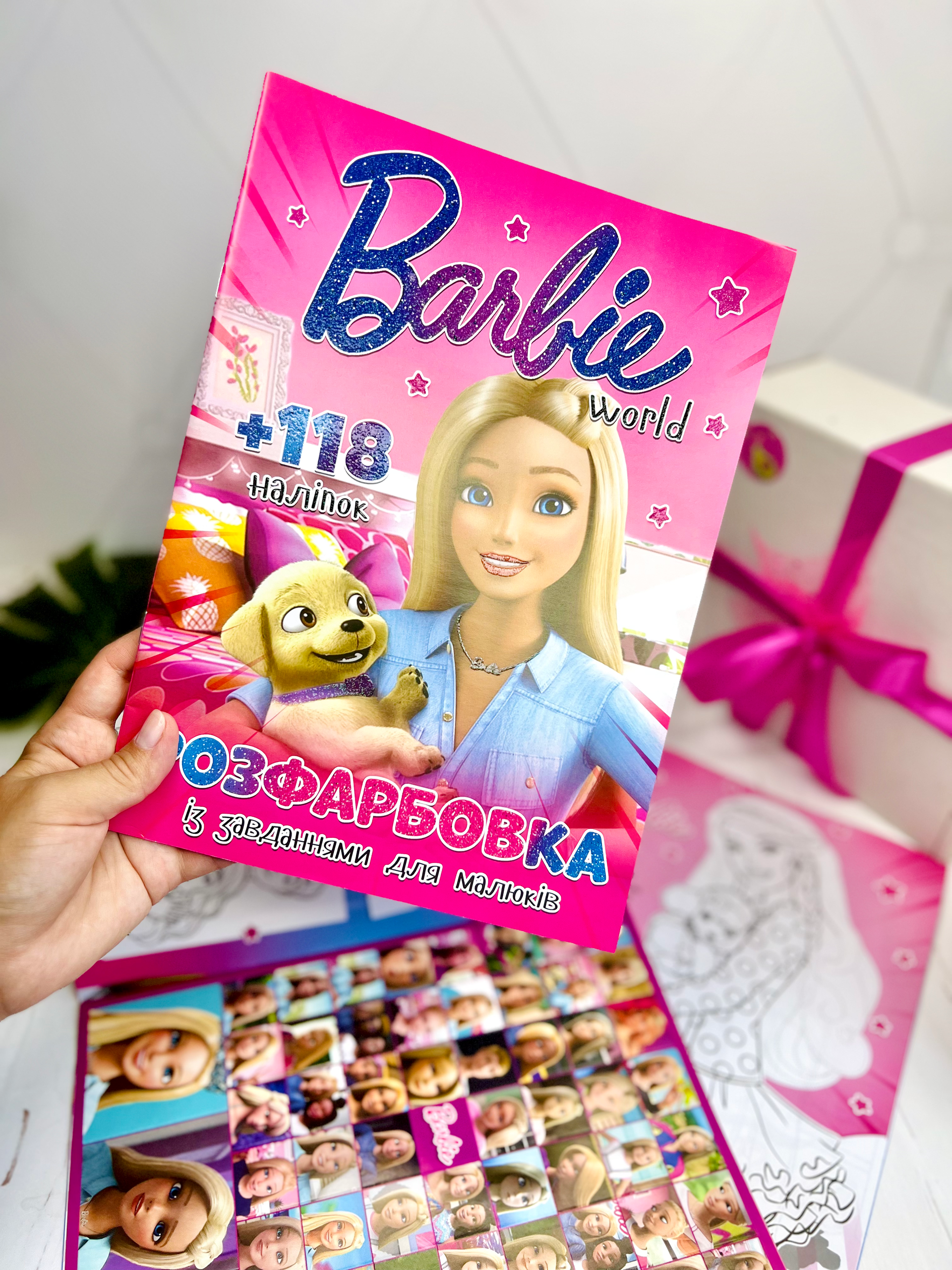Розмальовка має 118 наліпок, кольорові сторінки та завдання.