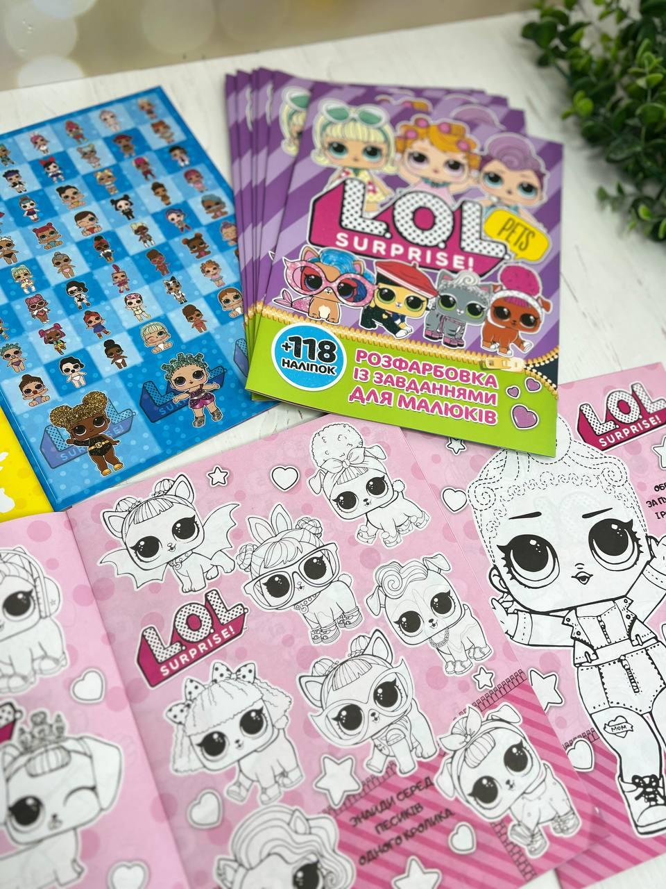 Розмальовка з ляльками Лол містить більше 118 наліпок та різні завдання,захопливі ілюстрації для розфарбовування. Ідеально підходить для творчого розвитку та веселого дозвілля дітей.