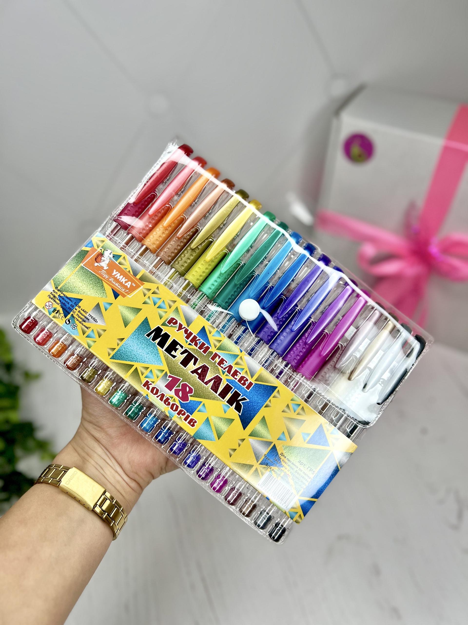 Ручки гелеві з металічним блиском, набір 18 кольорів