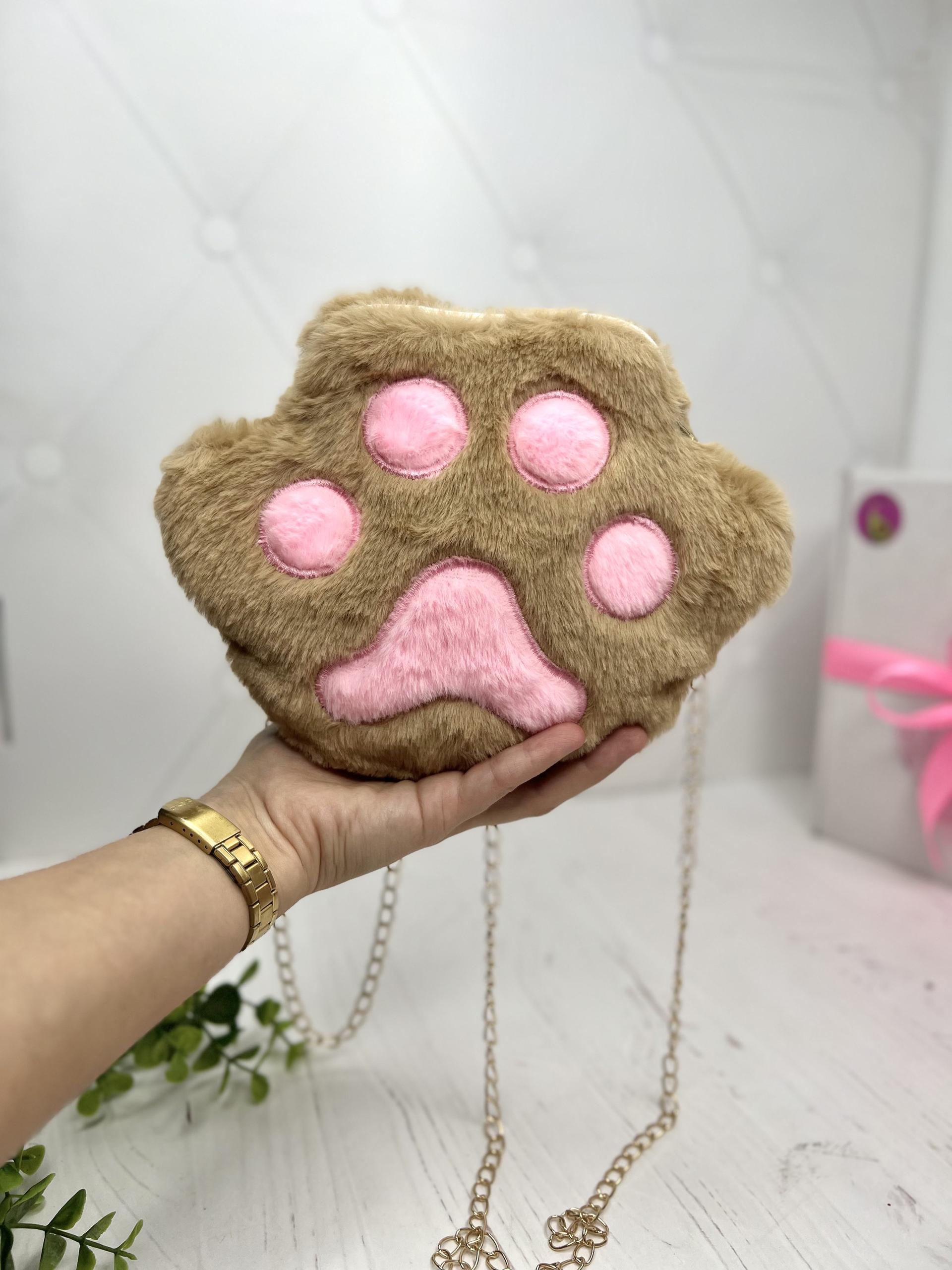 Плюшева сумочка Лапка – тренд серед дітей. Сумочка в комплекті має ланцюжок, в середині текстильна підкладка, застібається на нього замок-змійку. Розмір 20х17 см