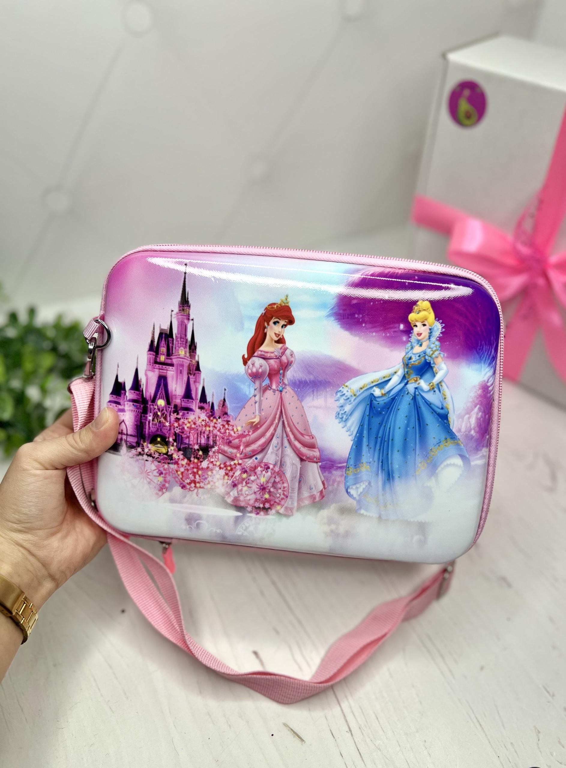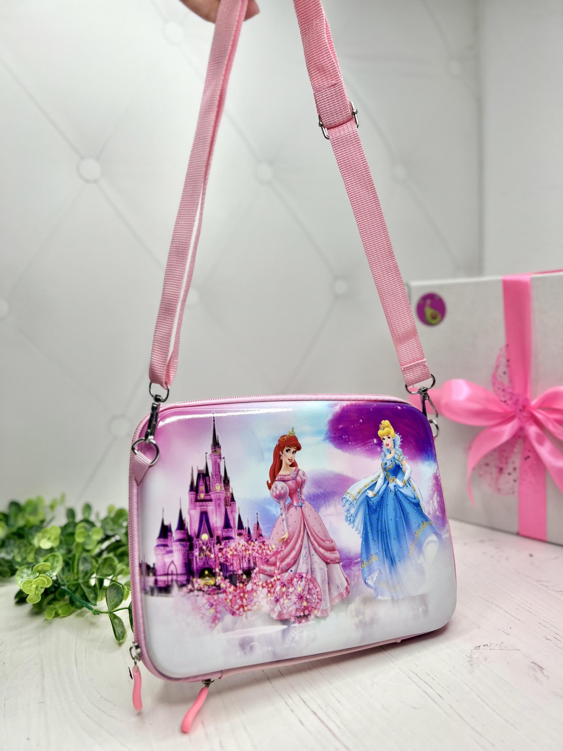 Сумочка Принцеси корпусна, вмісткого формату, в неї вміститься порівняно багато улюблених речей, щоб взяти на прогулянку чи в садочок. Розмір 23х18 см.